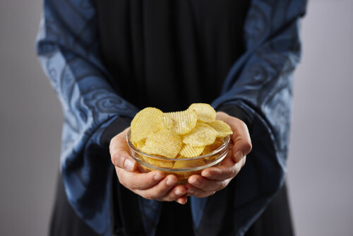 رجل سعودي يحمل علمين صغيره للمملكة العربية السعودية