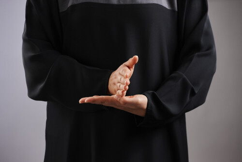 امرأة تشير بيديها بلغة الإشارات المختلفة