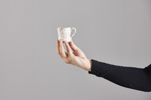 امرأة ترتدي عباءة سوداء تحمل أدوات فخارية مختلفة في أوضاع متعددة
