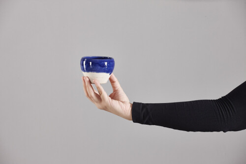 امرأة ترتدي عباءة سوداء تحمل أدوات فخارية مختلفة في أوضاع متعددة