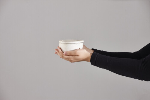 امرأة ترتدي عباءة سوداء تحمل أدوات فخارية مختلفة في أوضاع متعددة