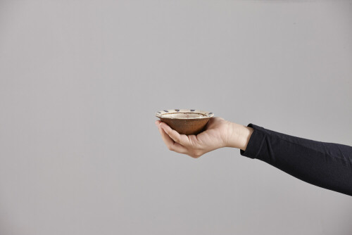 امرأة ترتدي عباءة سوداء تحمل أدوات فخارية مختلفة في أوضاع متعددة