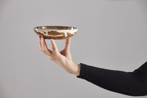 امرأة ترتدي عباءة سوداء تحمل أدوات فخارية مختلفة في أوضاع متعددة