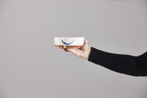 امرأة ترتدي عباءة سوداء تحمل أدوات فخارية مختلفة في أوضاع متعددة