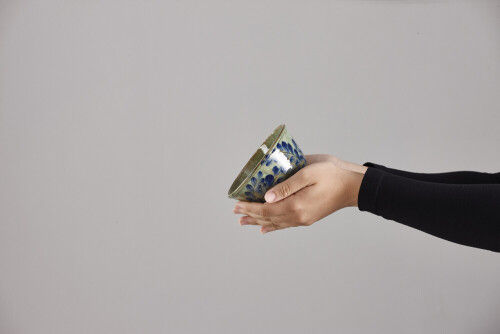 Multicolored Pottery Bowl with wooden honey handle on the side