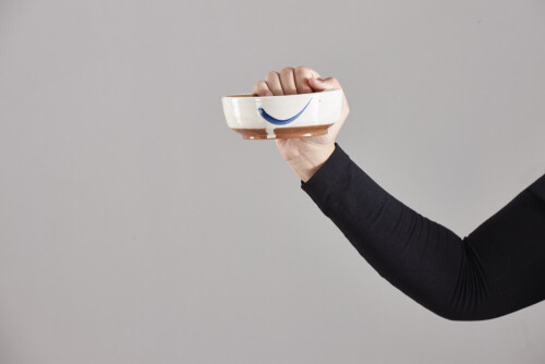 A woman in black abaya holding different pottery essentials in different positions
