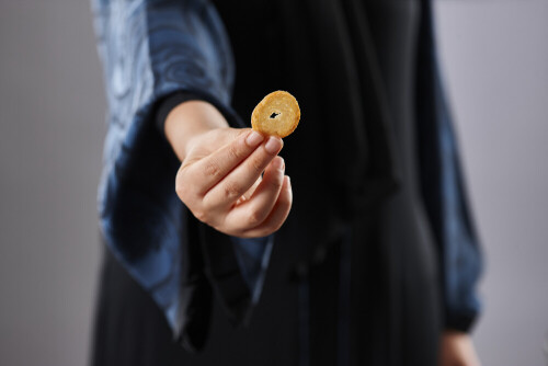 A Saudi woman having a Call in a blue background wearing blue Abaya with hijab