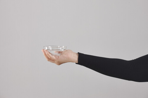 A woman in black abaya holding different glassware in different positions