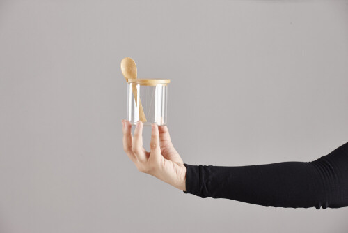 A woman in black abaya holding different glassware in different positions