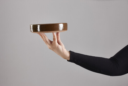 A woman in black abaya holding different pottery essentials in different positions