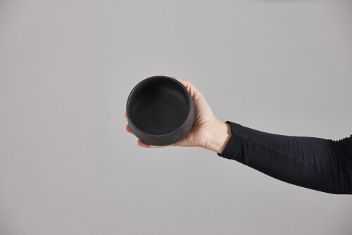 A woman in black abaya holding different pottery essentials in different positions