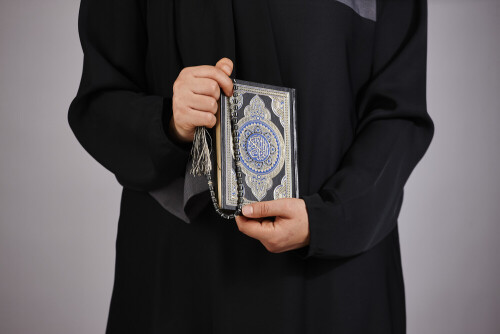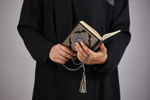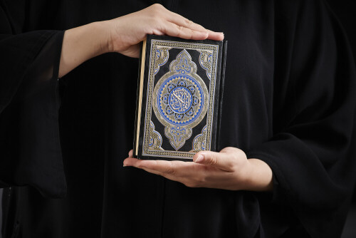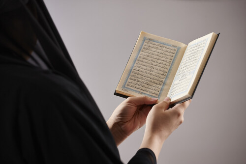 A woman hands holding moshaf in different positions