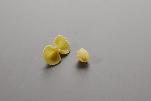 معكرونة فيونكة مع أنواع أخري من المعكرونة علي خلفية رمادية