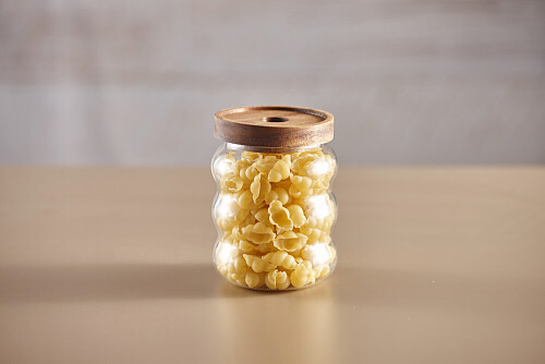 معكرونة في أوعية زجاجية علي خلفية بيج