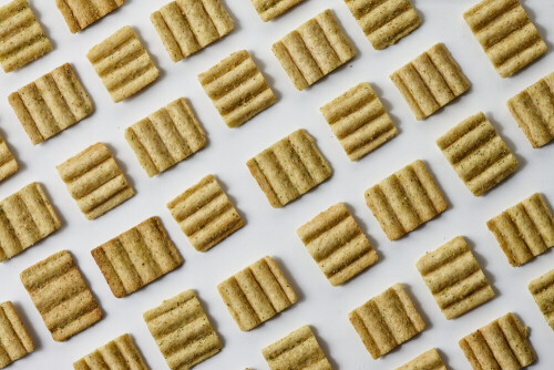 وجبات خفيفة من المقرمشات على خلفية بيضاء