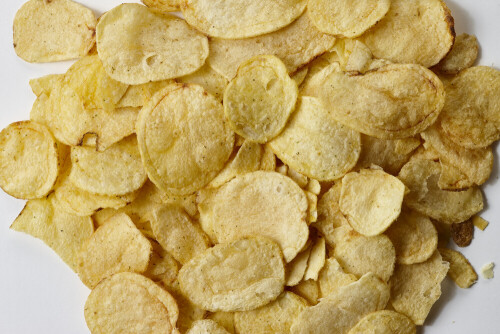 وجبات خفيفة من رقائق البطاطس الشيبس على خلفية بيضاء