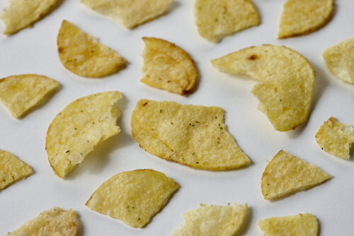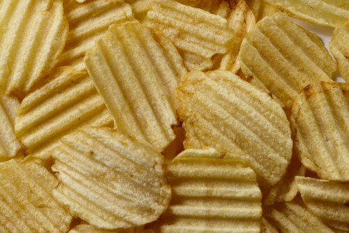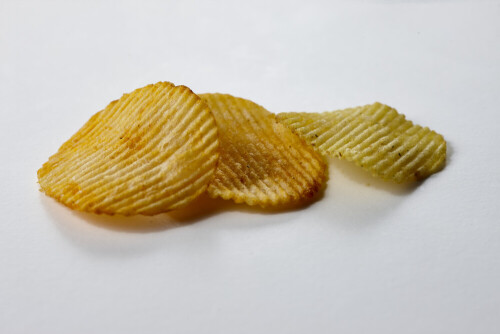 وجبات خفيفة من رقائق البطاطس الشيبس على خلفية بيضاء