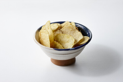 وجبات خفيفة من رقائق البطاطس الشيبس على خلفية بيضاء
