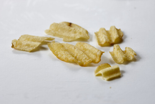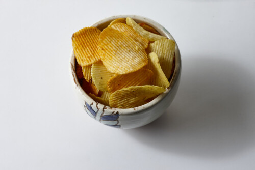 وجبات خفيفة من رقائق البطاطس الشيبس على خلفية بيضاء