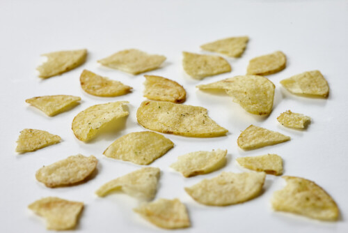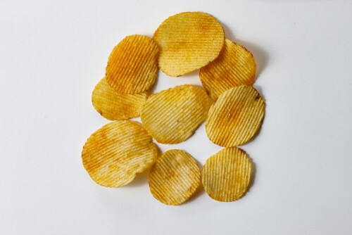 وجبات خفيفة من رقائق البطاطس الشيبس على خلفية بيضاء