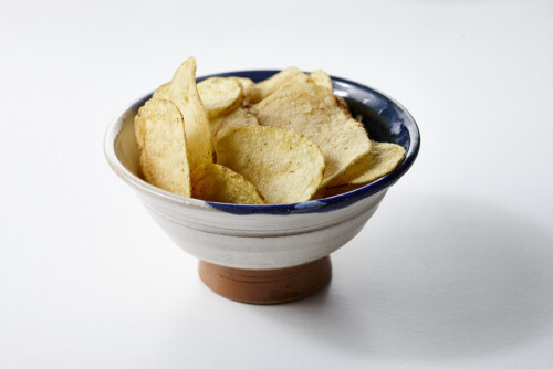 وجبات خفيفة من رقائق البطاطس الشيبس على خلفية بيضاء