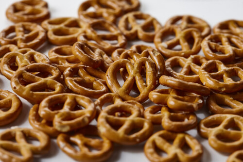 وجبات خفيفة من البريتزل على خلفية بيضاء