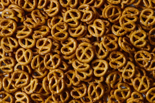 وجبات خفيفة من البريتزل على خلفية بيضاء