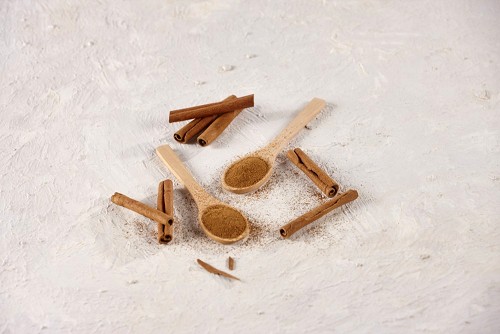 بودرة القرفة في ملاعق خشبية