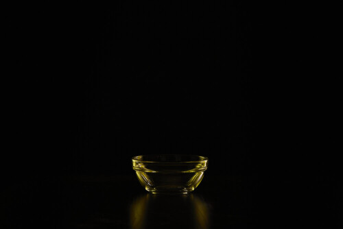 أواني زجاجية مع حواف مضيئة باللون الأصفر على خلفية سوداء