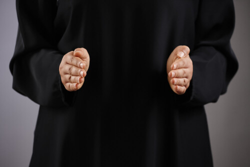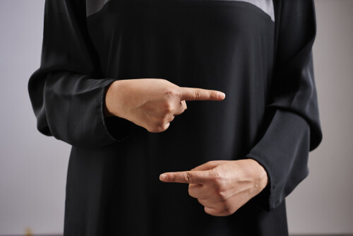امرأة تشير بيديها بلغة الإشارات المختلفة