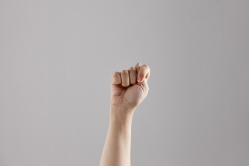 امرأة تشير بيديها بلغة الإشارات المختلفة