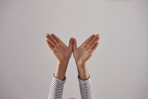 امرأة تشير بيديها بلغة الإشارات المختلفة
