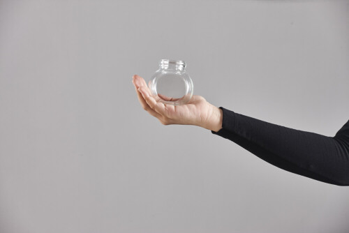 امرأة ترتدي عباءة سوداء تحمل أدوات زجاجية مختلفة في أوضاع متعددة