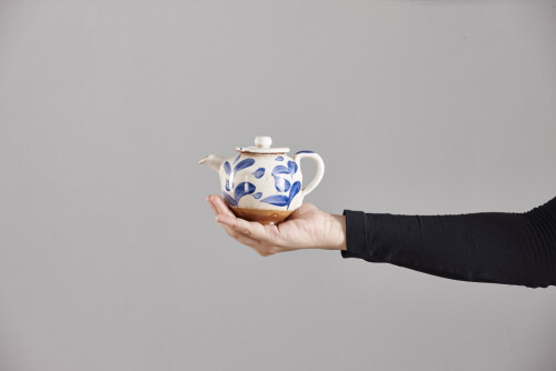 امرأة ترتدي عباءة سوداء تحمل أدوات فخارية مختلفة في أوضاع متعددة