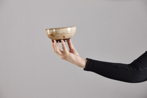 امرأة ترتدي عباءة سوداء تحمل أدوات فخارية مختلفة في أوضاع متعددة