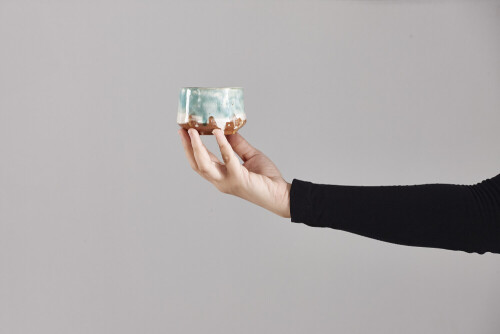 امرأة ترتدي عباءة سوداء تحمل أدوات فخارية مختلفة في أوضاع متعددة