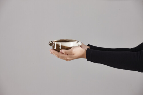 امرأة ترتدي عباءة سوداء تحمل أدوات فخارية مختلفة في أوضاع متعددة