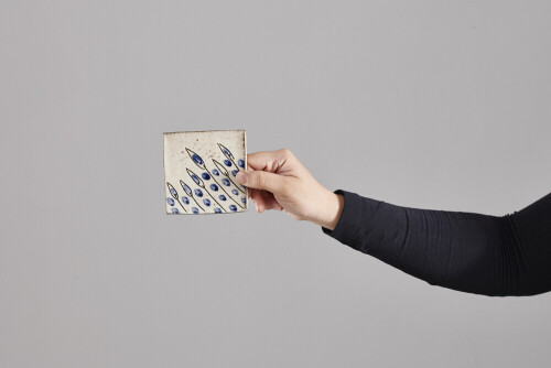امرأة ترتدي عباءة سوداء تحمل أدوات فخارية مختلفة في أوضاع متعددة