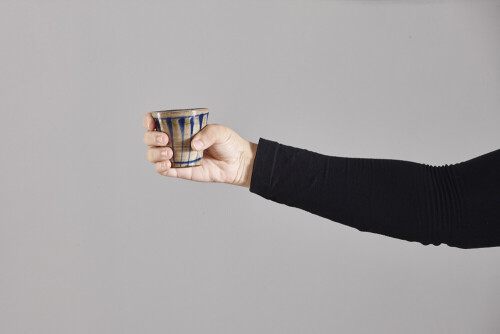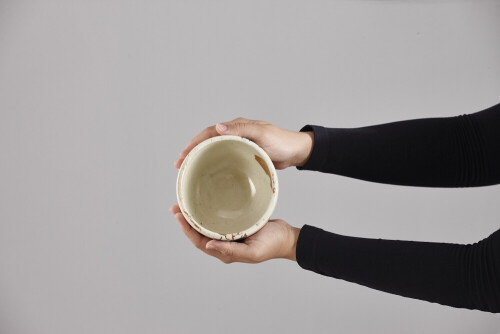 امرأة ترتدي عباءة سوداء تحمل أدوات فخارية مختلفة في أوضاع متعددة