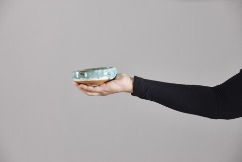 امرأة ترتدي عباءة سوداء تحمل أدوات فخارية مختلفة في أوضاع متعددة