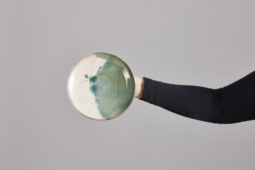 امرأة ترتدي عباءة سوداء تحمل أدوات فخارية مختلفة في أوضاع متعددة