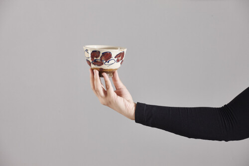 امرأة ترتدي عباءة سوداء تحمل أدوات فخارية مختلفة في أوضاع متعددة