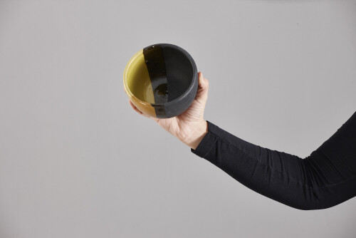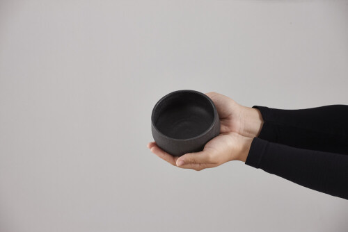 امرأة ترتدي عباءة سوداء تحمل أدوات فخارية مختلفة في أوضاع متعددة