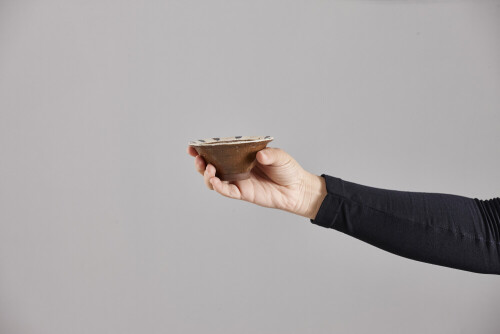 امرأة ترتدي عباءة سوداء تحمل أدوات فخارية مختلفة في أوضاع متعددة