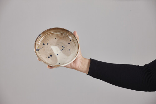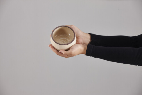 امرأة ترتدي عباءة سوداء تحمل أدوات فخارية مختلفة في أوضاع متعددة