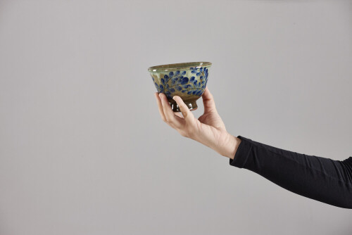 امرأة ترتدي عباءة سوداء تحمل أدوات فخارية مختلفة في أوضاع متعددة