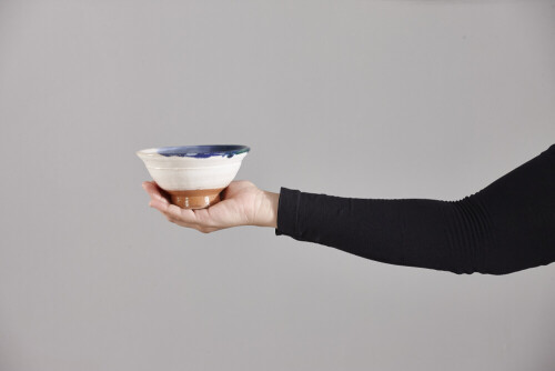 امرأة ترتدي عباءة سوداء تحمل أدوات فخارية مختلفة في أوضاع متعددة