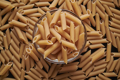 معكرونة فرن في وعاء زجاجي علي خلفية سوداء