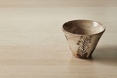 وعاء فخاري مزخرف على خلفية خشبية فاتحة