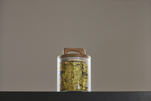 ترتر ملون في وعاء زجاجي علي خلفية سوداء